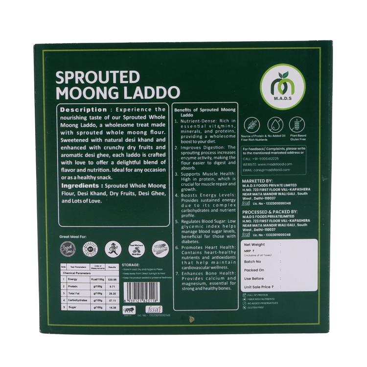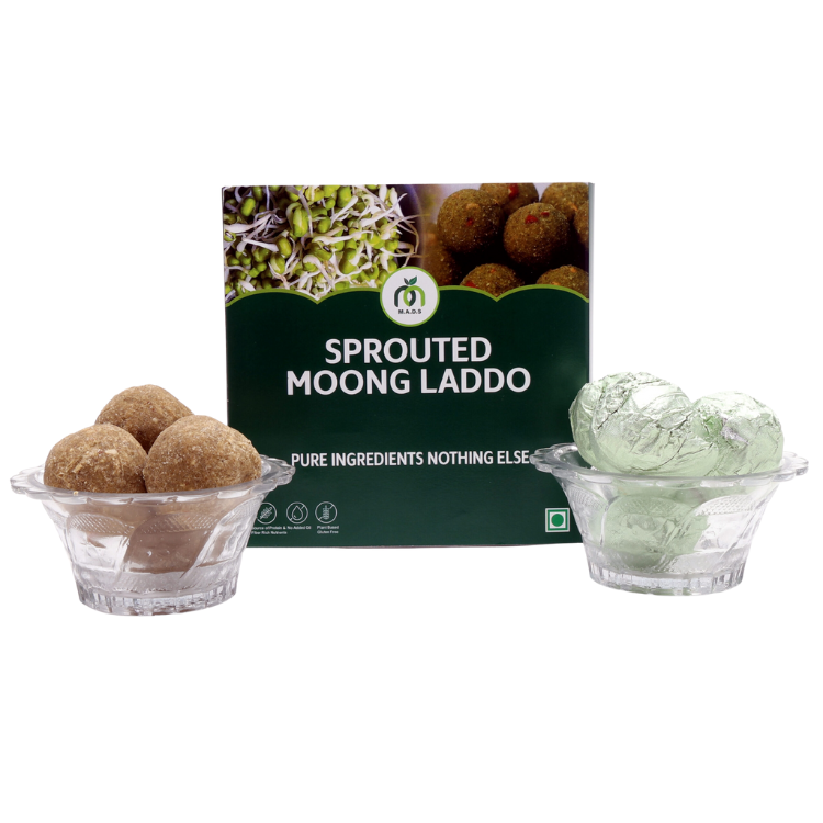 Wholesome laddos made with sprouted moong flour, desi khand, ghee, and dry fruits. Rich in protein, vitamins, and minerals — a perfect blend of taste and nutrition for everyday energy or festive indulgence.